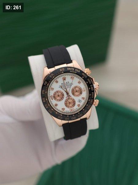 ساعة رولكس رجالي جلد (ساعة + علبة فخمة